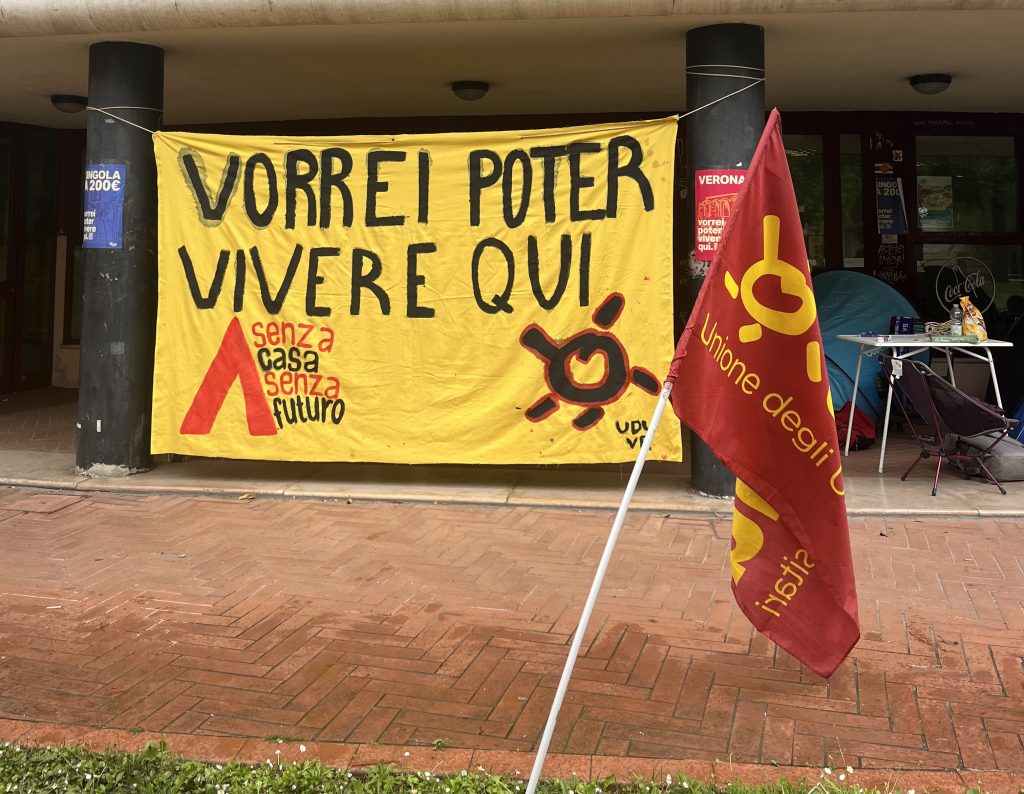 È iniziata ieri, giovedì 11 maggio, sulla scia delle altre città italiane, la protesta contro il caro affitti che gli studenti universitari stanno affrontando. Con UDU Verona (Unione Degli Universitari), nel giardino della mensa del Polo Zanotto, alcuni studenti ed alcune studentesse dell’Università hanno ‘piantato’ cinque tende dove hanno passato la notte.