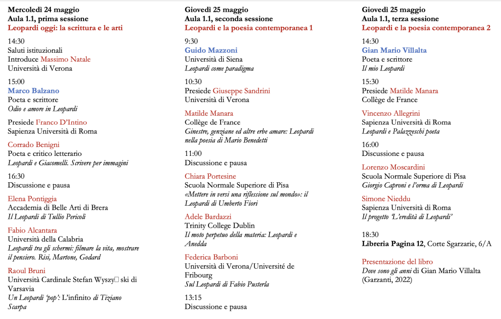 Il Dipartimento di Culture e Civiltà ospiterà nei giorni 24-25 maggio 2023, nell’Aula 1.1 del Polo Zanotto, il Convegno di Studi L’eredità di Leopardi: Dal Novecento al contemporaneo.