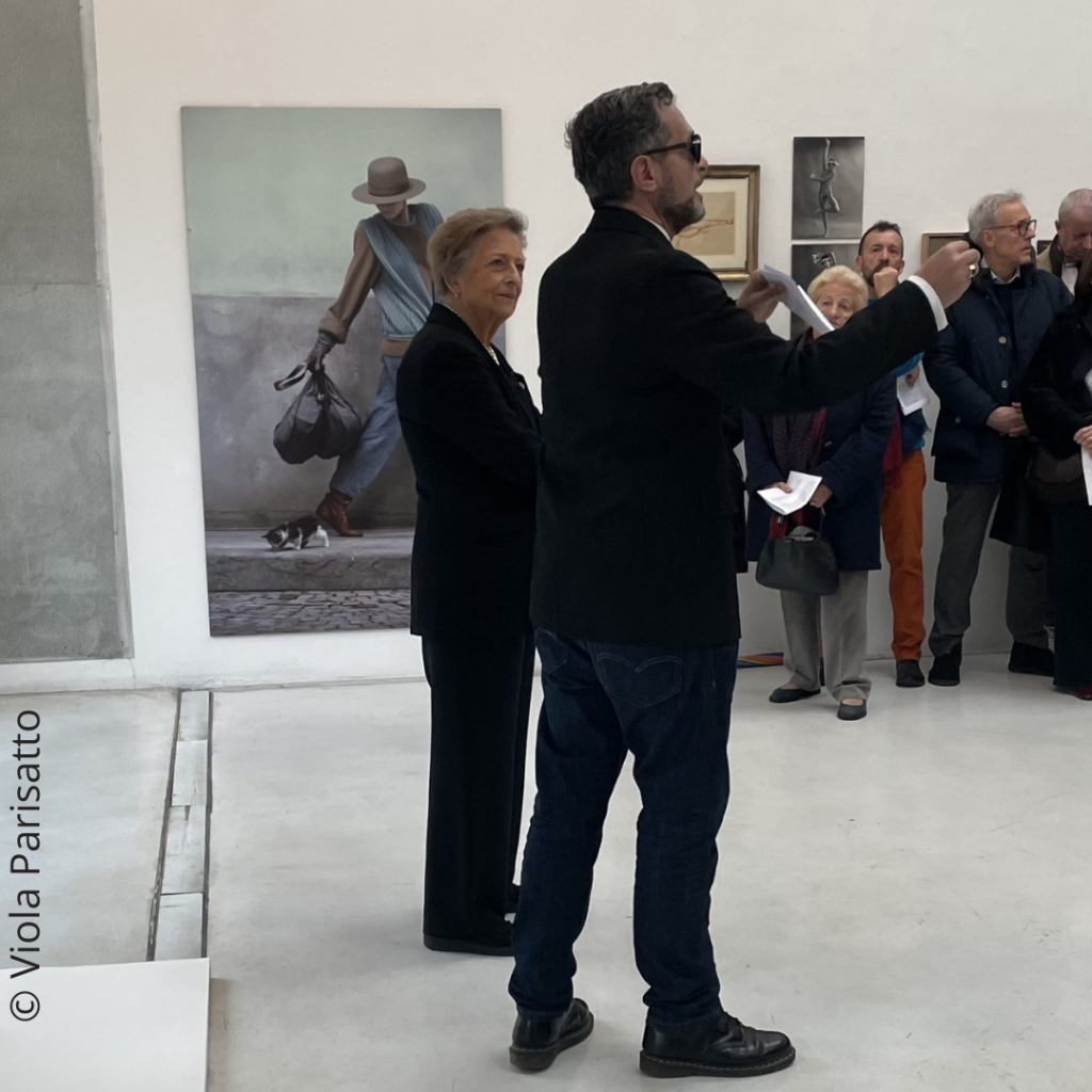 “è una mostra che se ti lasci andare oltre ogni convenzione, oltre ogni idealità dell’arte contemporanea è facilissima da capire. In fondo questa mostra è un po’ come l’educazione: non si deve vedere troppo ma se lasci parlare le persone, capisci che lo sono”: così ha detto Luca Massimo Barbero, al fianco della gallerista de Franchis, facendo una breve presentazione della mostra.
