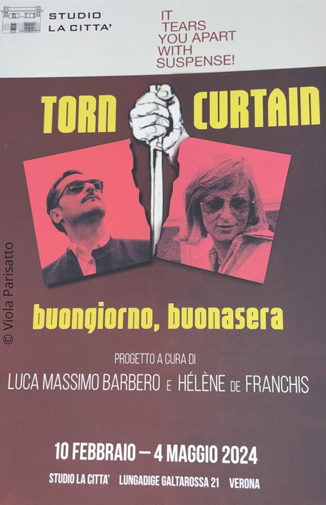 Nella tarda mattinata di sabato 10 febbraio, presso la galleria d’arte “Studio la Città”, si è tenuta l’inaugurazione della mostra Torn Curtain. Buongiorno, buonasera a cura di Hélène de Franchis, fondatrice e titolare della galleria d’arte in questione, e Luca Massimo Barbero, professore e storico dell’arte. Con questo titolo i curatori riprendono una frase di Alfred Hitchcock riguardante il suo film Torn Curtain: “Chiedere a uno che racconta delle storie di tener conto della verosimiglianza mi sembra tanto ridicolo quanto chiedere a un pittore figurativo di rappresentare le cose con esattezza”.