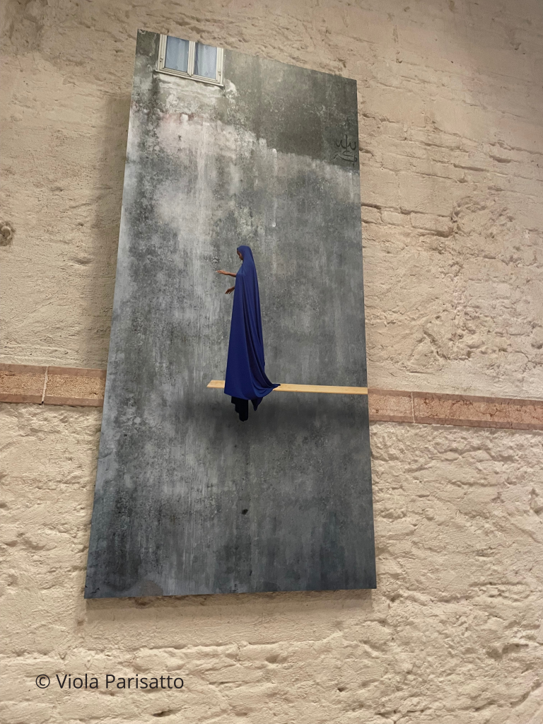 Consiglio a chiunque di visitare questa mostra perché trasmette delle sensazioni molto profonde e toccanti a mio parere. L’opera più bella di questa esibizione, ovvero quella che mi ha toccata particolarmente, è Blue Trampoline: rappresentazione della dualità tra sospensione, elevazione e paura del vuoto e racconto della possibilità di coesistere fuori dalle logiche di terrore, sfruttamento e dominio.