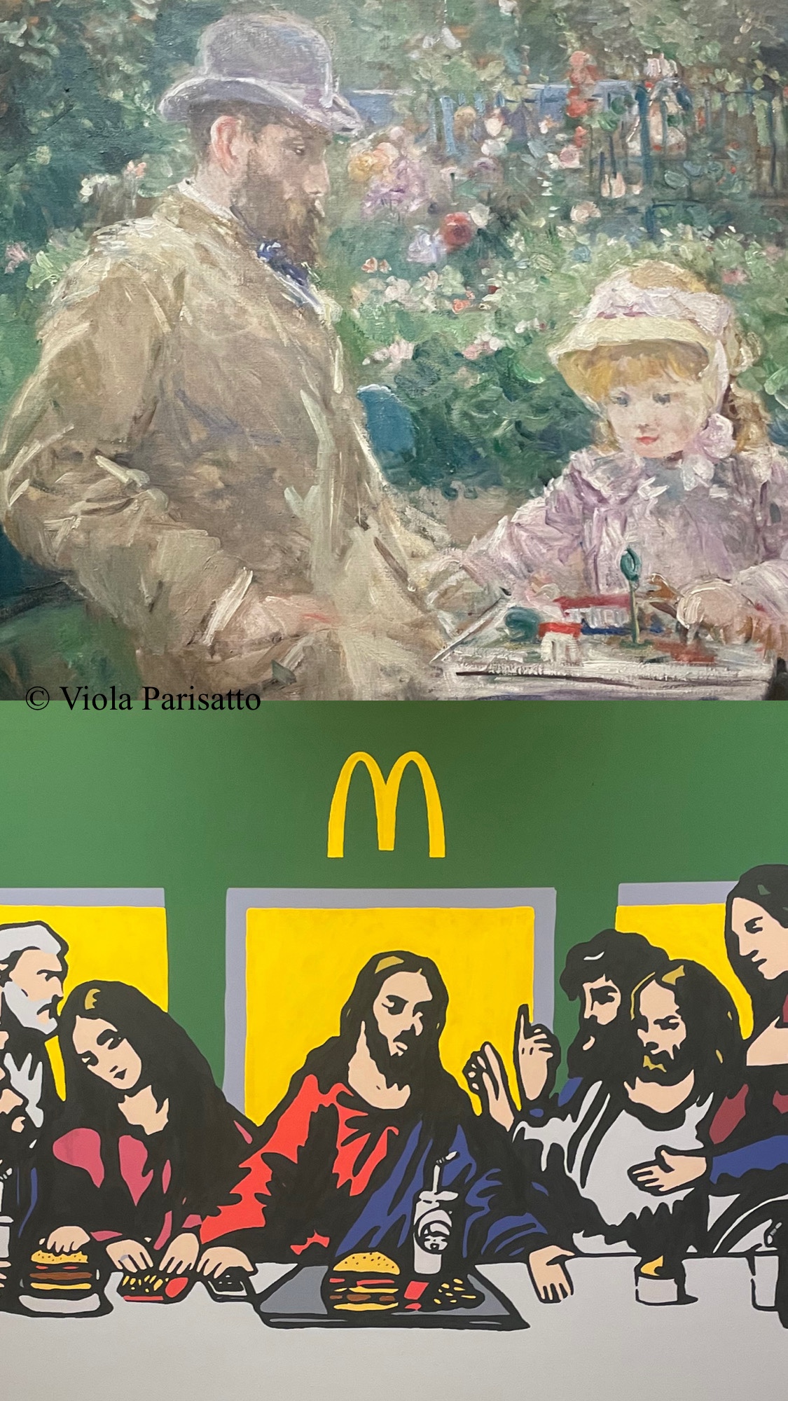 Lo street artist TVBOY, come Banksy, ha un’identità segreta che trasmette al pubblico un senso di mistero e fascino alle sue opere lasciandole parlare da sole, senza essere influenzate dalla personalità dell’artista. L’obiettivo che si pone TVBOY è il suscitare emozioni e stimolare il pensiero critico sfidando le convenzioni. L’artista reinventa icone pop e personaggi storici trasformandoli in figure che riescono a mettere in discussione le narrazioni dominanti ed è proprio questo reinventare, uno degli aspetti che più distinguono la sua arte. La sua capacità di creare un dialogo tra passato e presente invita gli spettatori a riflettere sulle modalità con cui la storia e la cultura influenzino la nostra percezione del mondo. The Fast Supper, mescolando uno dei capolavori assoluti dell’arte rinascimentale con il mondo contemporaneo, è un chiaro esempio del dialogo passato-presente.