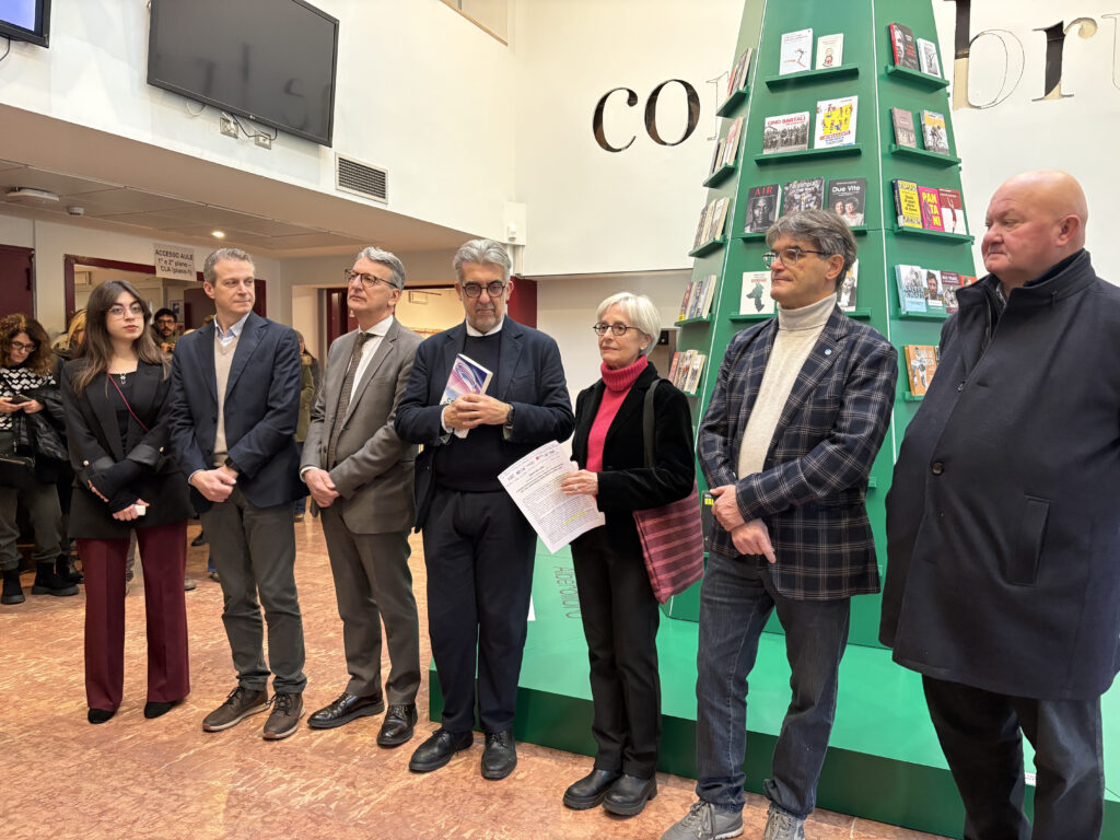 Avete mai visto dei libri usati come decorazione di un Albero di Natale? Se la risposta è no, potreste vivere questa esperienza inedita visitando AlberoLibro, l’installazione inaugurata e accesa martedì 6 dicembre al Polo Zanotto. L’Albero resterà negli spazi del nostro ateneo fino all’arrivo della Torcia Olimpica a Verona il 18 gennaio 2026. All’inaugurazione hanno partecipato il prorettore Giovanni de Manzoni, il direttore della Fondazione Mondadori Paolo Verri, il presidente della Commissione Giochi olimpici di Ateneo Federico Schena, il presidente del Consiglio comunale Stefano Vallani,il presidente di Esu Verona Claudio Valente, la coordinatrice del Sistema bibliotecario Daniela Brunelli e la presidente del Consiglio studentesco Irene Lupi.