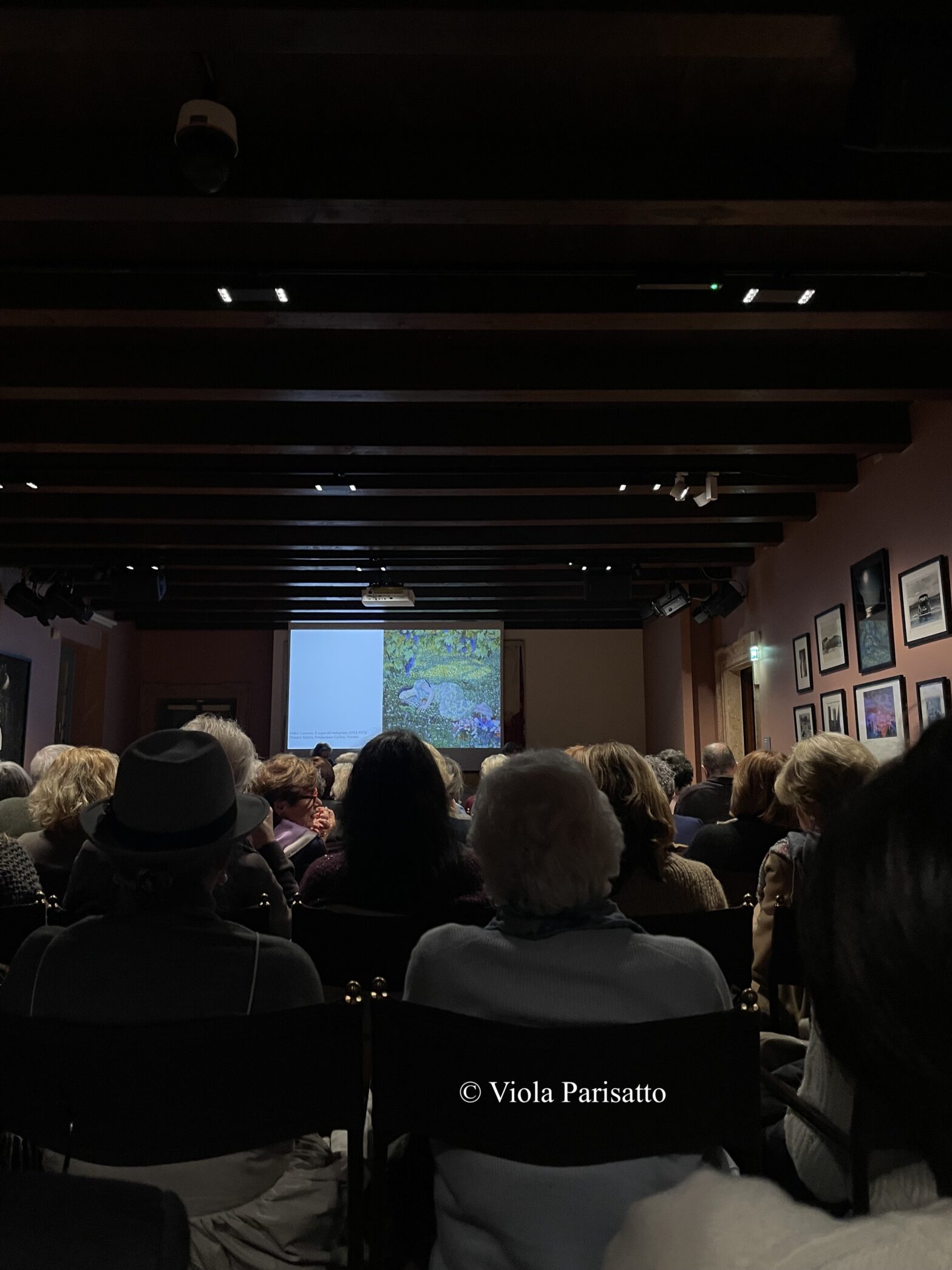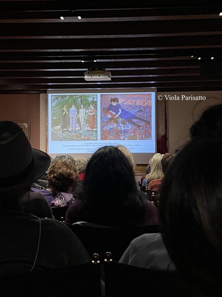 Tra i diversi aneddoti condivisi con il numeroso pubblico, Gabriella Belli ha affascinato i più con il racconto riguardante il dipinto protagonista dell’incontro: Il sogno del melograno, realizzato a Verona nel 1912. La storica dell’arte, frequentatrice della veronese Galleria dello Scudo, entra in contatto con la tela per la prima volta alla metà degli anni ‘90, trovandola lì esposta, poco prima che l’opera venisse acquistata da dei suoi cari amici. Dopo questo acquisto, infatti, la Belli si è trovata ad ammirare il quadro ogni volta che andava da loro in visita: il dipinto era stato appeso nella sala da pranzo, di fronte al posto a lei riservato, portandola ad instaurare col dipinto un legame intimo, che andava al di là della sua rilevanza storico-artistica e della sua bellezza.